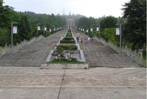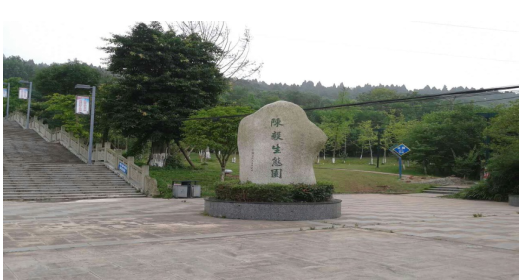 红花彩径绿岸,倒影涟漪曲栏。古塔山黛梯缓,国泰民安步闲。