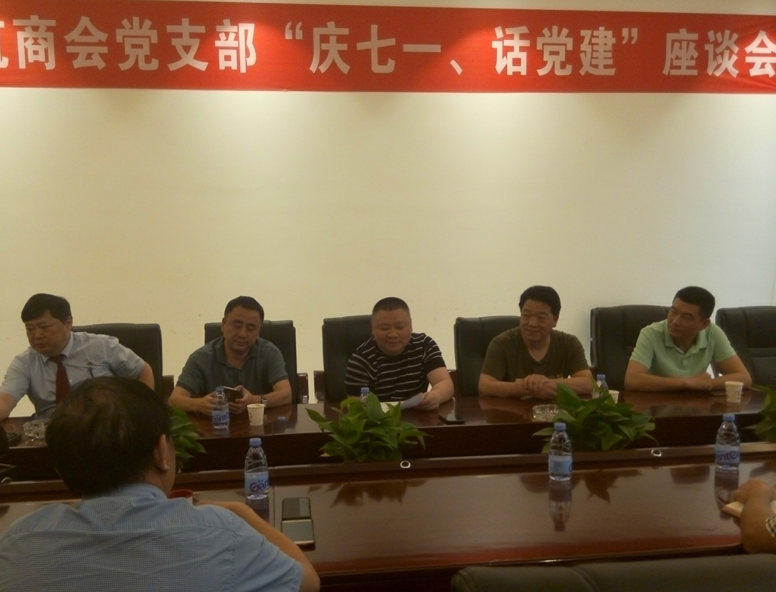 举世热看世界杯,夏日荷花别样红。资阳市地产建筑商会党支部“庆七一、话党建”座谈会于2018年6月21日在资阳市国际商贸城召开。地建商会党支部全体党员(5名+安岳宏达公司王飞雄同志因要事派员)出席了会议,市工商联党组书记、常务副主席吴明化,副主席杨艺,市第二综合党工委委员、市民政局杨贵科长、市地建商会吴明刚会长应邀参加会议。会议由雷平书记主持。