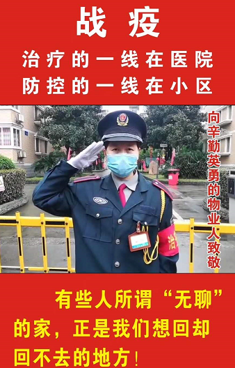 资阳市车城佳美物业公司、副会长单位,全体员工尤其是共产党员,自疫情爆发以来,持续奋战在抗疫第一线,舎小家顾大家,放弃亲人团聚,坚守平凡岗位。不仅完成本职工作,还全部成了各个社区最得力的义工:冒着被感染的危险,扛起进出登记、检测体温、解惑释疑、出去买菜、送货上门,成为我们身边抗疫最辛苦的人。