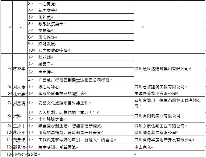 本会网站是我们对外宣传和展示的平台。本会网站用稿得到各会员单位老总及联络员的认可,投稿积极性比较踊跃,是发自内心、有感从实地宣传公司、宣传老总的积极作为。2020年我会采用了12家会员单位投稿,特别是得到了简阳德盛公司、四川蜀乐环保科技公司 、资阳市阳明实业公司、安岳玮发房地产公司、四川通世达建筑集团公司、四川志虹建筑工程公司等朋友的认真参与与辛苦付出。按照资地发(2018)04号文件规定,对撰稿情况予以通报并兑现酬金。