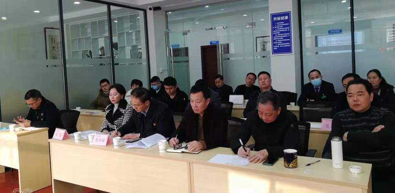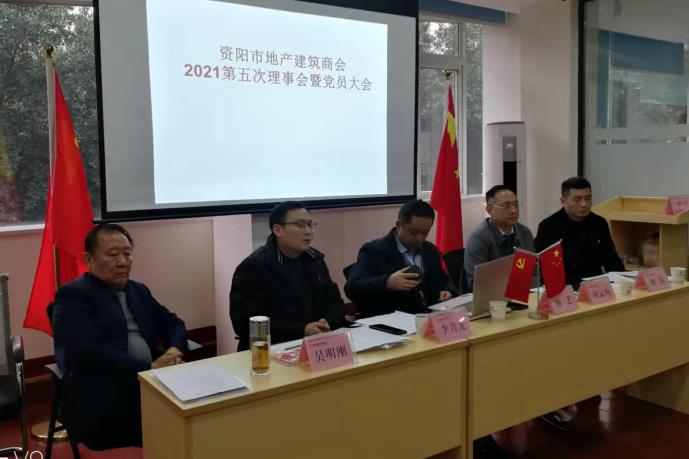 岁月不居,时节如流。资阳市地产建筑商会第2届理事会2021第5次会议暨第4季度党支部大会,于2021年12月23日在江苏雨田资阳分公司2楼会议室召开。本次会议应出席理事会成员23人,实到19人,因事因病请假4人。执行会长刘浪主持会议。市委统战部副部长何云均,市工商联副主席、市商会综合党委书记杨艺,市商会综合党委副书记周学强,市住建局建管科长李青龙受副局长杨学龙委托莅临指导,周煦洪等兄弟单位党支部负责同志光临传宝。