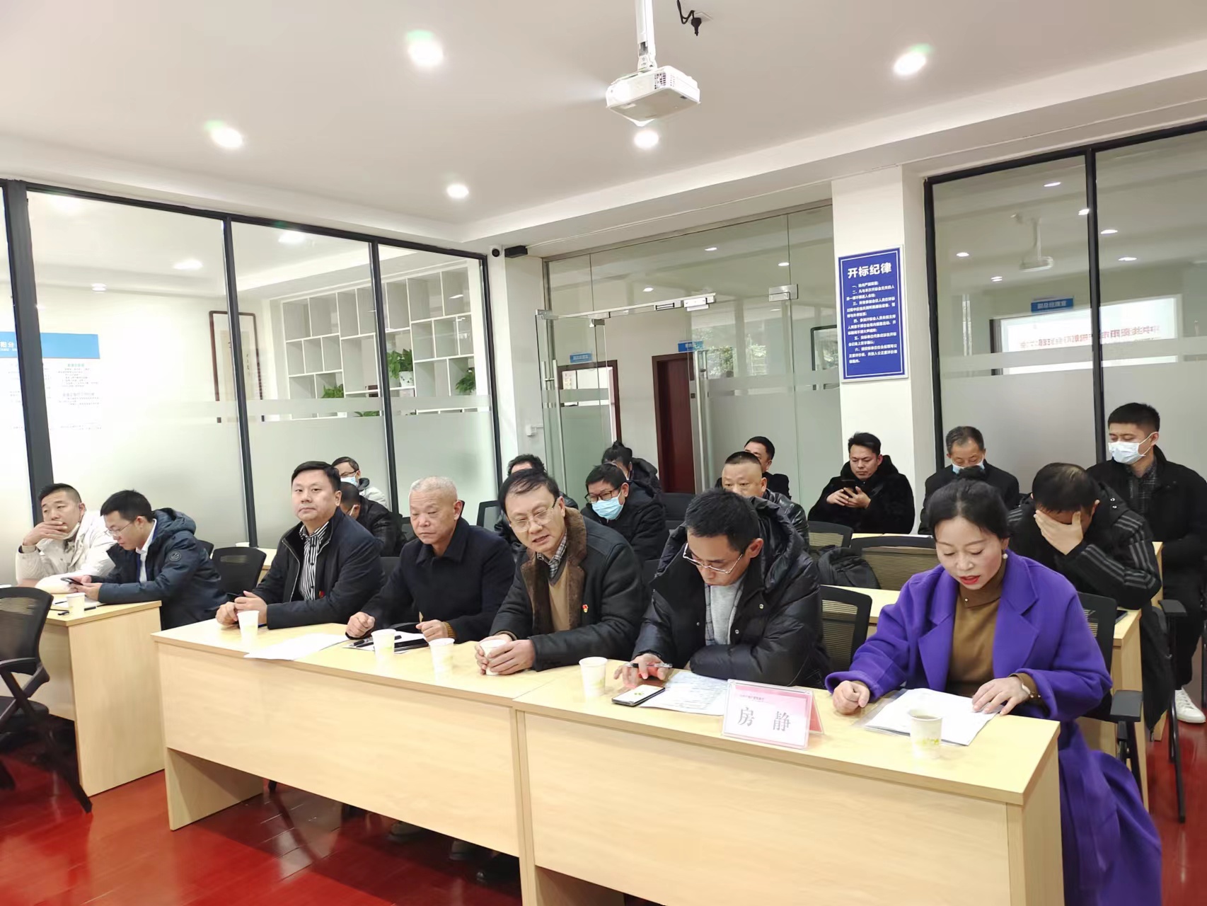 2022年12月9日,本会理监事会今年第2次会议暨党支部四季度党员大会在雁江区(江苏雨田资阳分公司)召开。中共资阳市委统战部副部长、资阳市工商联(市商会)党组书记陈锦阳,资阳市工商联(市商会)党组成员、副主席、市商会综合党委书记杨艺,市工商联(市商会)办公室主任、市商会综合党委副书记周学强莅临指导。吴明刚等15位理监事会成员、王永丰等11名中共党员出席会议。执行会长、党支部书记刘浪主持会议。会议共有10项议程,分两段召开。