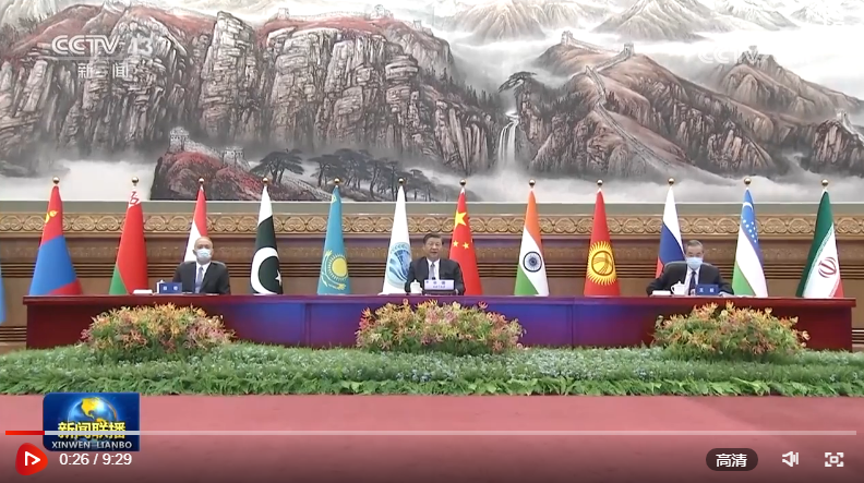 国家主席习近平7月4日下午在北京以视频方式出席上海合作组织成员国元首理事会第二十三次会议并发表题为《牢记初心使命 坚持团结协作 实现更大发展》的重要讲话。