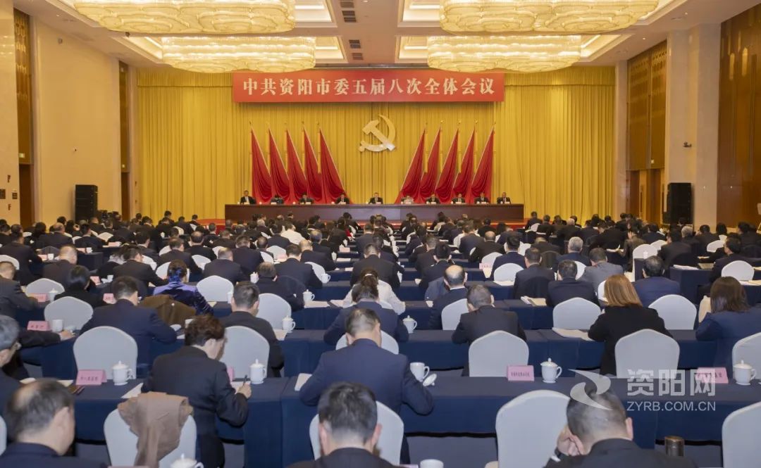 中国共产党资阳市第五届委员会第八次全体会议,于2023年12月6日在雁江举行。出席全会的有,市委委员42人,候补市委委员9人。市纪委常委、市监委委员和有关方面负责同志列席会议。市第五次党代会代表中部分基层同志和行业专家列席会议。非公有制经济组织和社会组织党组织主要负责同志或出资人(负责人)党员代表应邀列席会议。主题教育省委第十巡回督导组负责同志到会指导。