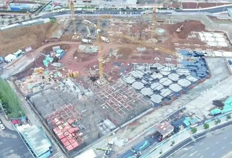 截至2023年7月1日,成渝高铁资阳北综合客运枢纽站项目主体基坑土方开挖、边坡支护、桩基工程已全部完成,基础垫层累计完成8200m²、砖胎膜累计完成595m³,防水卷材累计完成10685m²,地下室基础钢筋绑扎累计完成360t,桩头破除总完成626根,目前正进行垫层浇筑、防水卷材、砖胎膜施工、筏板钢筋及混凝土浇筑施工。
