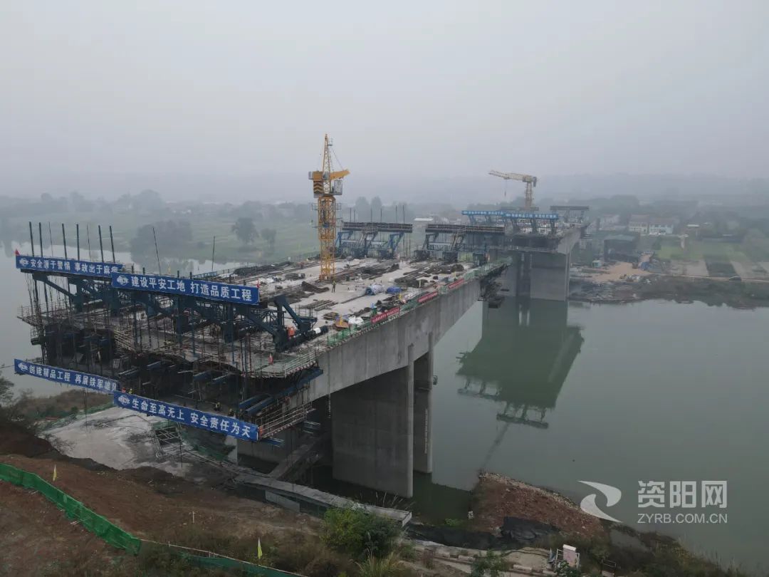 资妹儿走进董家坝沱江特大桥的建设现场,看见施工场地上焊花飞溅,林立的塔吊不停地运送着建筑材料,工作人员忙碌的身影来回穿梭,正紧张地进行悬臂挂篮施工。