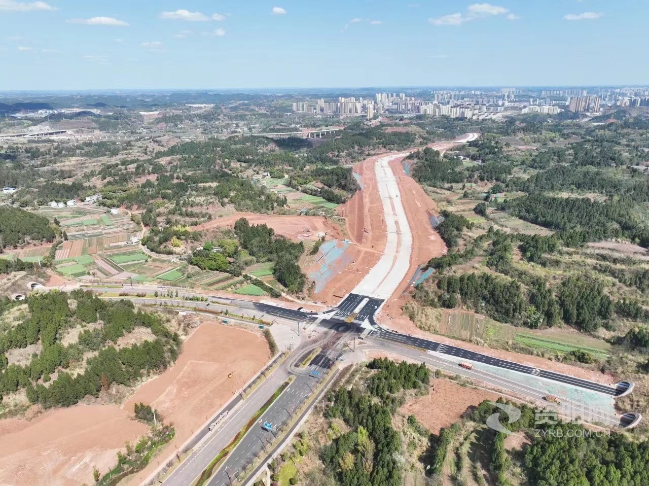 另一边,在距离梅西商圈11公里外的资州大道B段项目现场,两台黄色压路机正在一前一后进行路面面层压实工作。资阳市临空经济区建设局项目推进办主任廖承炎介绍,目前,资州大道B段已完成路基和雨污水管网工程施工,计划在今年6月底达到功能性通车条件。
