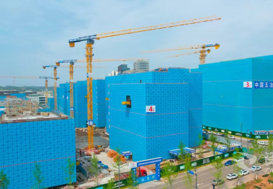 “开工以来,为保证项目进度,管理团队和建设人员全部采取‘5+2’工作模式,长期保持400余名工人在项目现场施工。清明节、‘五一’节等假日我们也坚守岗位,确保了4月底项目所有建筑全面封顶。”据项目技术负责人何浩介绍,自去年9月25日开工以来,项目管理团队坚持高标准、严要求,采用倒排工期、“5+2”工作、平行施工等方式,克服了场内施工面狭窄、商品砼等建材供应紧张、不利天气等多重困难,在确保施工安全、质量的情况下,有力保障了项目高质高效推进。