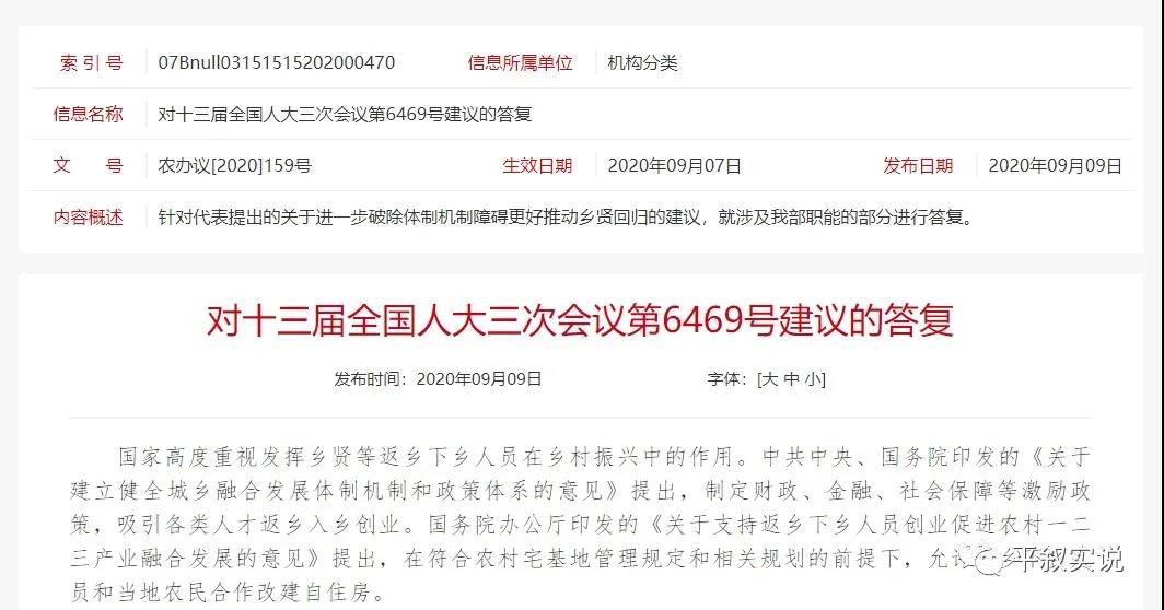 9月9日,农业农村部网站发布消息称,允许返乡下乡人员和当地农民在符合农村宅基地管理规定和相关规划的前提下,合作改建住房,支持返乡人员依托自有和闲置住宅发展适合的乡村产业。这是农村宅基地政策的重大突破,值得大家高度关注。