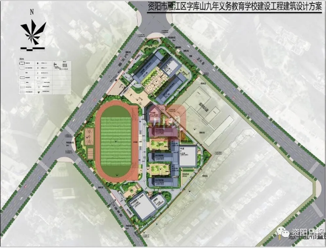 雁江区字库山九年义务教育学校,建设项目设计方案正在公示,计划设置54个班,提供2520个学位