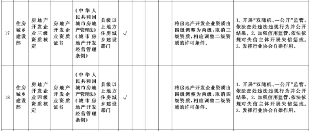 在全国范围内直接取消部分工程资质审批,其中包括工程造价、施工三级、房地产开发三级等资质:
