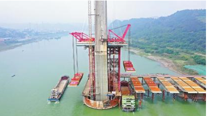 11月7日,从蜀道集团传来消息,由该集团下属四川路桥大桥分公司承建的宜宾临港公铁两用长江大桥项目完成首对钢箱梁对称悬拼吊装作业,全面进入上部构造施工阶段。该桥是时速350公里自宜高铁的控制性工程,也是目前世界最宽公铁两用桥。