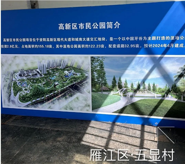 “资阳市高新区牙谷湿地(市民)公园开工建设,完工后将为市民提供一个非常好休闲场所,非常期待早日建成!”