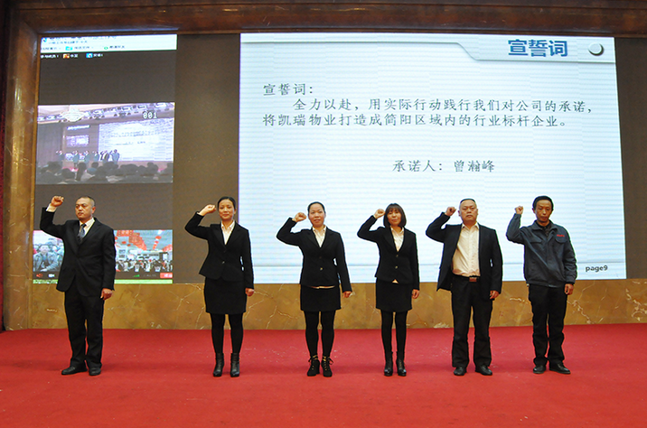 会议,会上德盛集团董事长、总经理曾总首先对2016年集团高层进行了任命并带领团队宣誓: