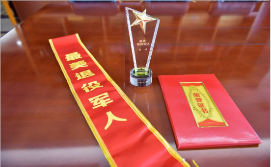 (代表简阳市“最美退役军人”最高荣誉的绶带、奖杯和证书)