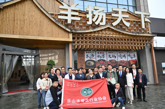 (乐山市餐饮行业协会考察团一行在羊扬天下美食城合影留念)