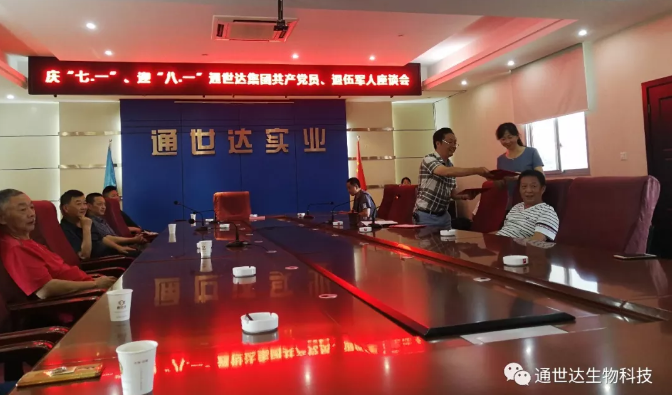 为进一步加强党的政治建设,在持续庆祝中国共产党建党98周年、新中国成立70周年之际,四川通世达集团公司党总支委员会于7月26日组织开展“不忘初心、牢记使命”主题教育活动暨庆“七·一”、迎“八·一”共产党员、退伍军人座谈会。集团全体党员、退伍军人共40余人参加会议,党总支对评选产生的6名优秀共产党员:殷林胜、王旭辉、肖雪斌、庾建华、熊秀玲、颜其富进行了表彰。