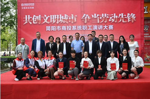 5月1日上午9点,由简阳市商务和投资促进局主办、简阳市社区公益志愿者协会协办、四川德盛和利集团有限公司承办的“共创文明城市 争当劳动先锋”职工演讲大赛在德盛商业广场隆重举行。简阳市商务和投资促进党组成员、机关党委书记 曾陈伟,简阳市社区公益志愿者协会会长 刘刚,四川德盛和利集团董事长、总经理 曾德,集团副董事长毛桂英,集团副总经理曾云富等领导出席,观摩指导比赛,来自社会各界不同岗位职工及志愿者共300多人观看本次比赛。
