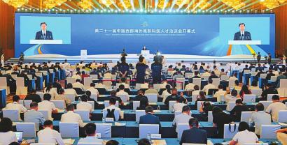 9月11日上午,以“共建创新生态·共享科技未来”为主题的第二十一届中国西部海外高新科技人才洽谈会(简称“海科会”)开幕式暨天府论坛在成都举行。全国政协副主席、九三学社中央常务副主席邵鸿出席开幕式并讲话。省委书记王晓晖,中央统战部副部长、国务院侨办主任陈旭分别致辞。省委副书记、省长黄强,省委副书记、成都市委书记施小琳出席。