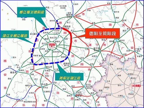 其中,成都“三绕”德简高速起于德阳城区以北G5京昆高速公路,经德阳市旌阳区、中江县、成都市金堂县,止于简阳市,线路全长105.6公里,德阳境内68公里。